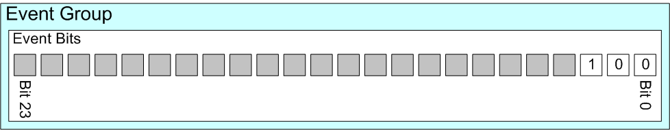 事件组中的所有事件位都存储在 EventBits_t 类型的单个无符号变量中。事件位 0 存储在位位置 0,事件位 1 存储在位位置 1,依此类推。