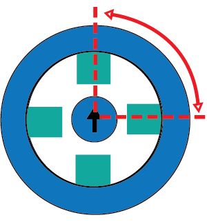 半步模式属于单相通电驱动和双相通电驱动的组合,这种模式可以将步距减小一倍(旋转 45°,而不是 90°)。其唯一的缺点是电机产生的扭矩不是恒定的,当两相都通电时扭矩较高,只有一相通电时扭矩较小。